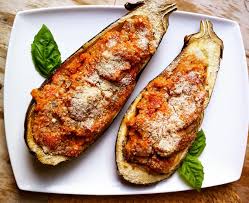 1- Corte as berinjelas ao meio, no sentido do comprimento. Cozinhe em água e sal, tomando o cuidado de deixá-las cozidas, porém firmes. Escorra bem e retire o miolo com cuidado. Reserve.