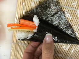 Pode acrescentar ao recheio manga picada em tiras (julien), folhas de alface, tiras de pepino. Pode substituir o arroz comum pelo japonês. Para facilitar o formato do cone, não coloque muito recheio. Sirva
