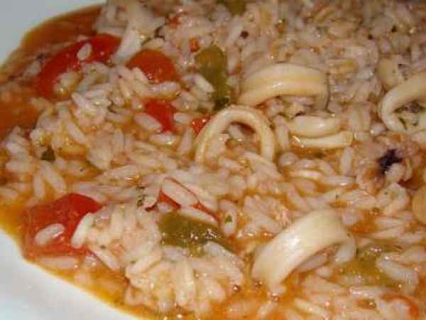 1- Limpe as lulas, lave-as bem e corte em pedaços. Refogue a cebola e os alhos, ambos picados, no azeite.