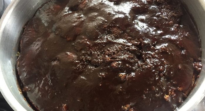 Coloque todos os ingredientes na panela pequena em fogo baixo fique mexendo até ficar grosso. Retire do fogo e coloque diretamente no bolo ainda quente.