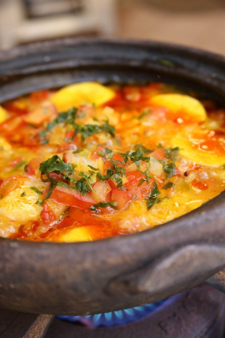 Ferver até que a banana esteja quase cozida. Acrescentar as postas de peixe e termine de cozinhar. Provar o sal e polvilhar com o cheiro-verde picado. Servir com a farofa.