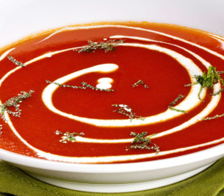 Retire do fogo, escorra a água e bata os tomates no liquidificador. Passe por uma peneira, aparando numa panela. Acrescente o iogurte, o açúcar, as ervilhas e o sal.