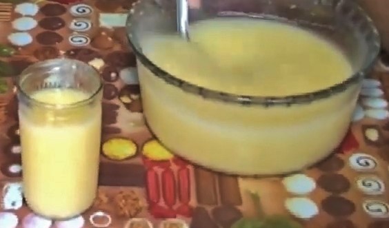 Adicione o açúcar mascavo para apressar a fermentação. Em seguida, depois de fermentado, coe e ponha um pouco de gengibre pisado. Adoçar e servir.