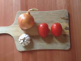 Prepare um molho consistente com os tomates e o manjericão, deixando o tomate cozinhar e dissolver. Reserve. Em uma frigideira, refogue os dentes de alho e a cebola até ficarem transparentes.