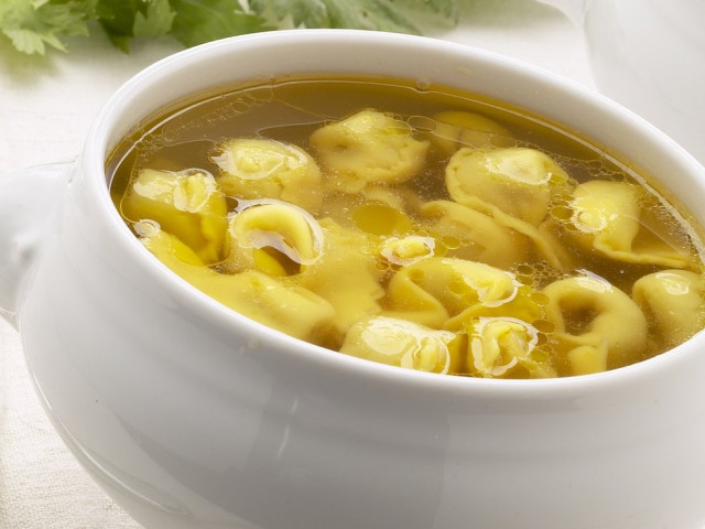 Temperar com sal e pimenta-do-reino e cozinhar os capeletes no brodo. Servir com mais parmesão ralado.
